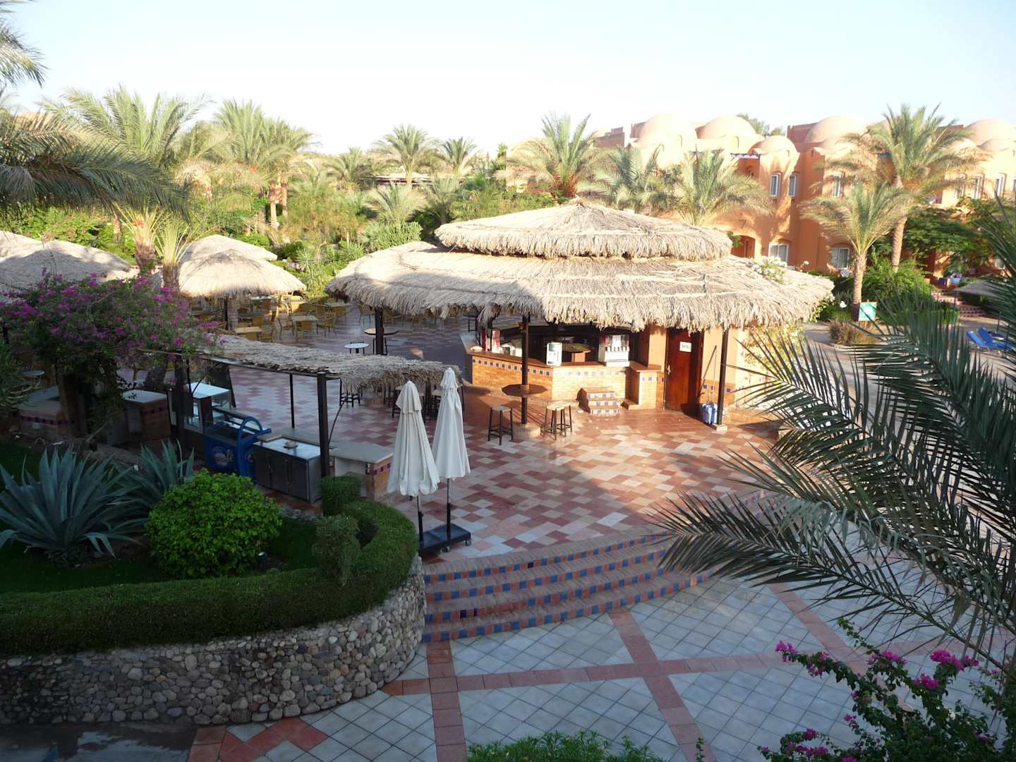 Blick auf die große Poolbar am Morgen