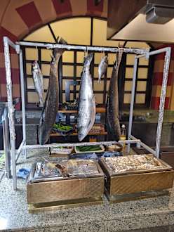 Am Außengrill immer frischer Fisch oder Fleisch.
