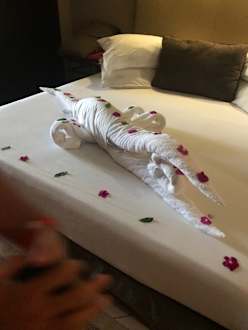ZimmerKreation von unserem Roomboy Ahmed, welcher sehr sauber geputzt hat und extrem bemüht war, uns zu umsorgen.
