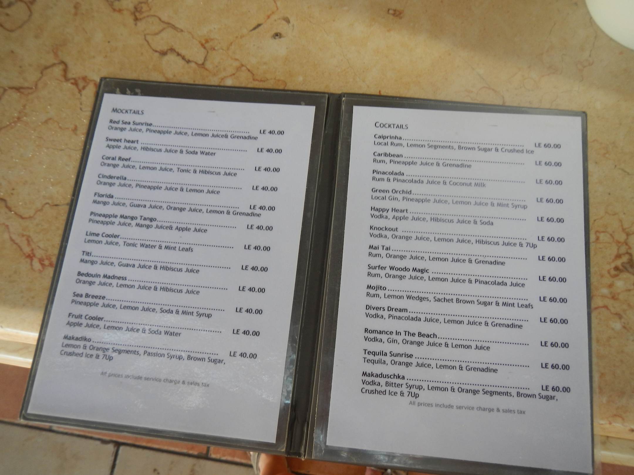 Cocktailkarte im A.I.Angebot.
