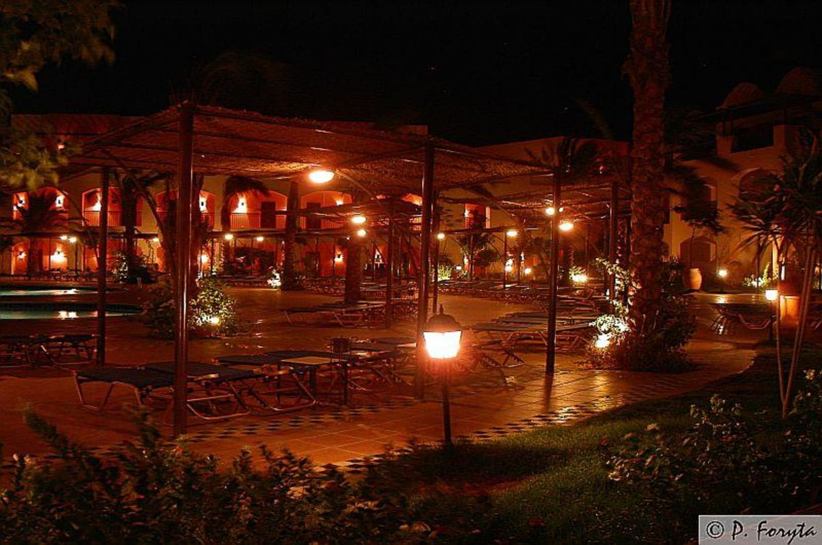 Poolanlage in der Nacht