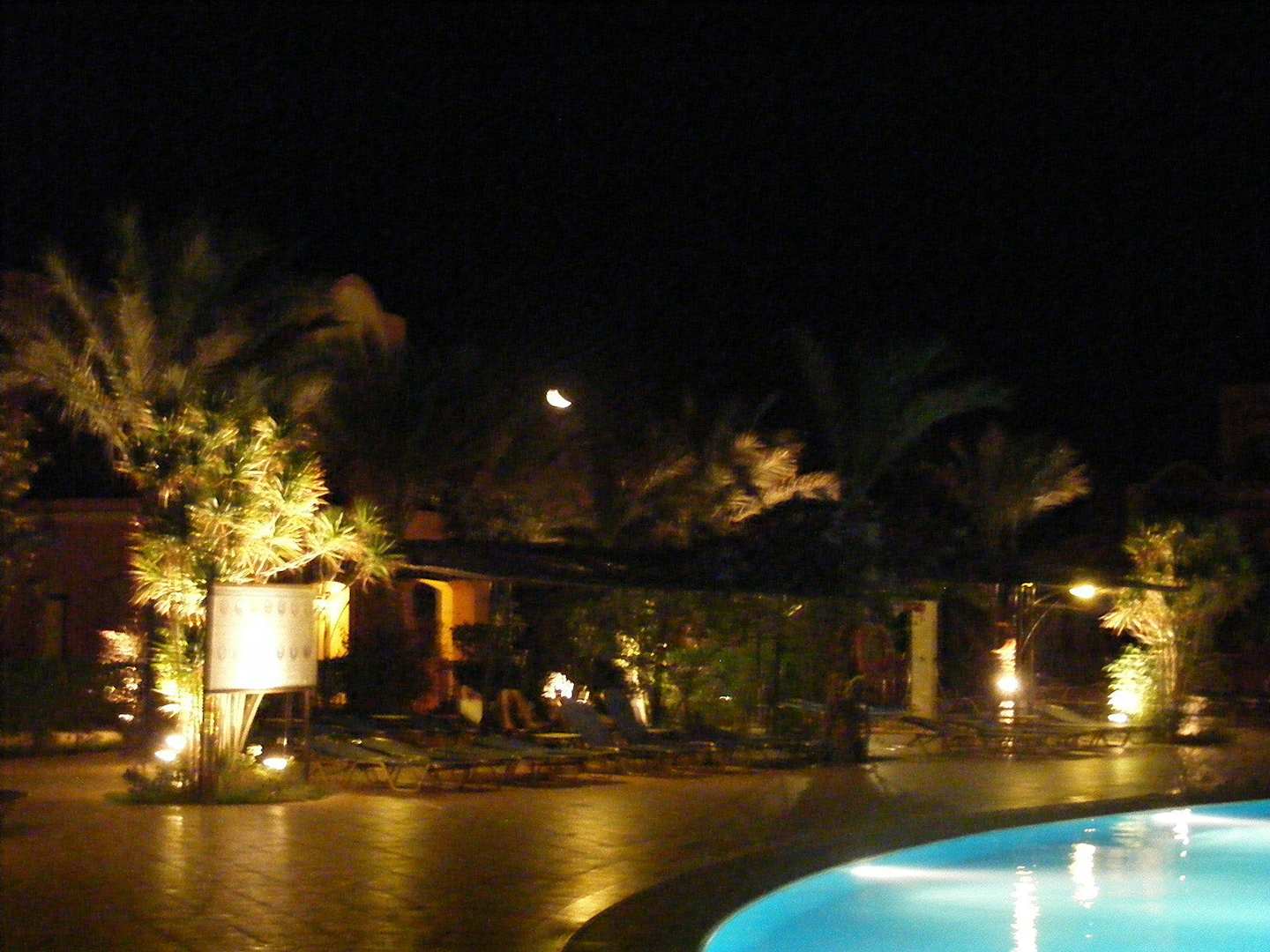 Teil der Poolanlage bei Nacht