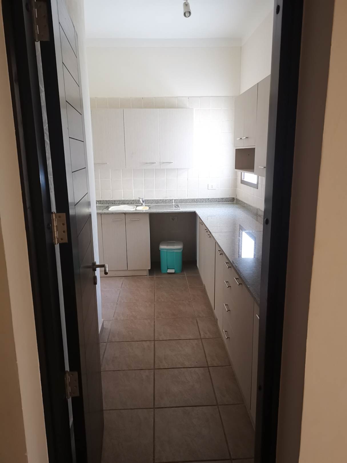 Küche mit Kühlschrank und Wasserkocher