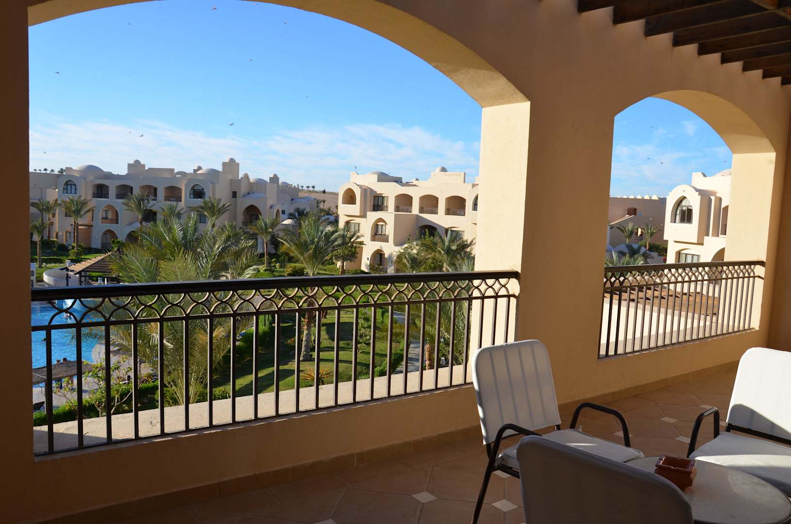 Blick von der Terrasse in die Anlage