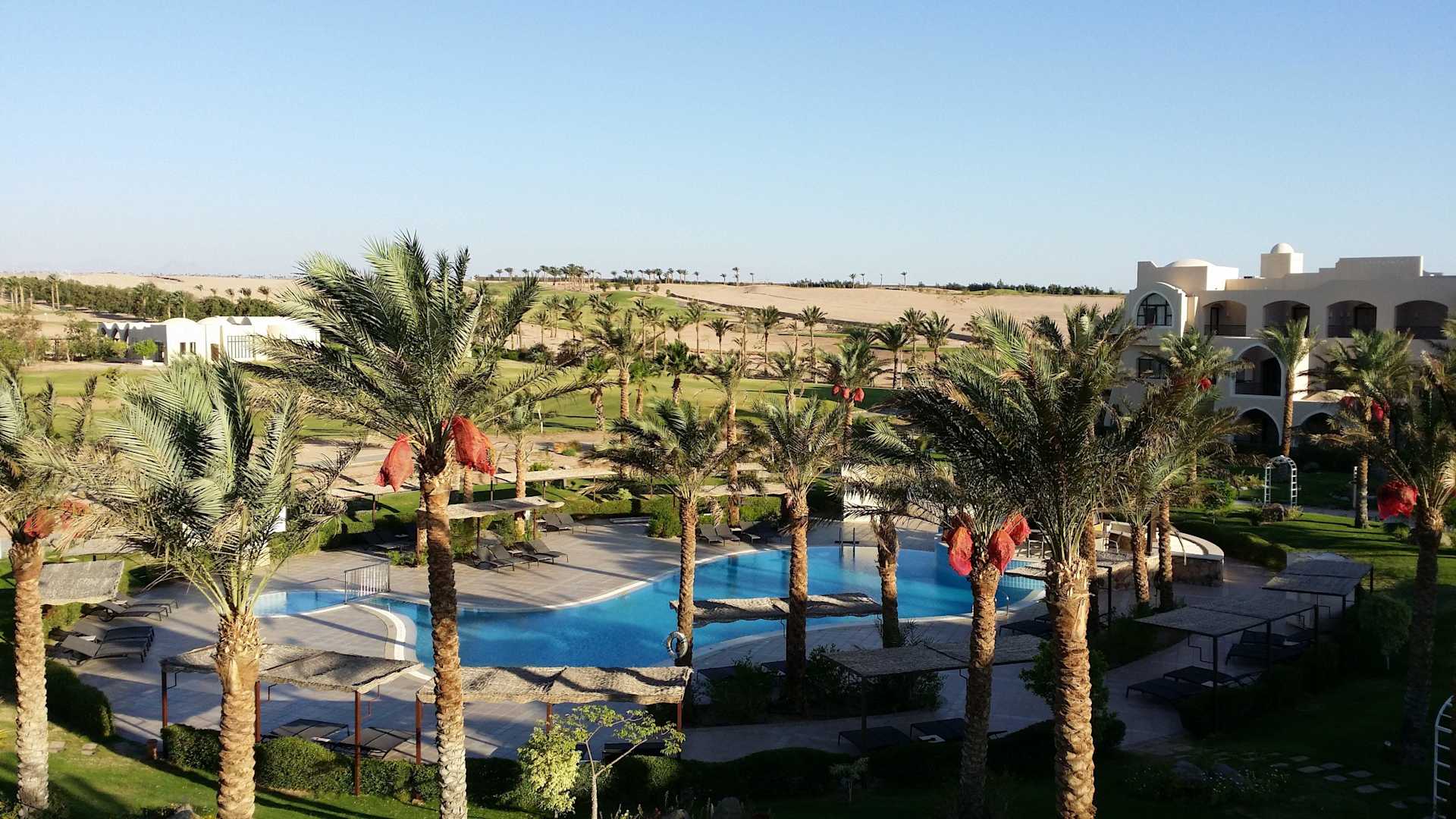Blick vom Balkon auf den Relax-Pool
