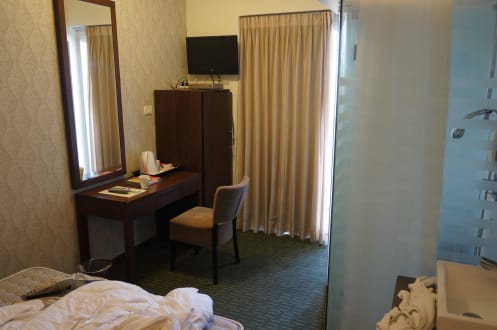 Номер, стекланная стенка справа, это туалет-душ.