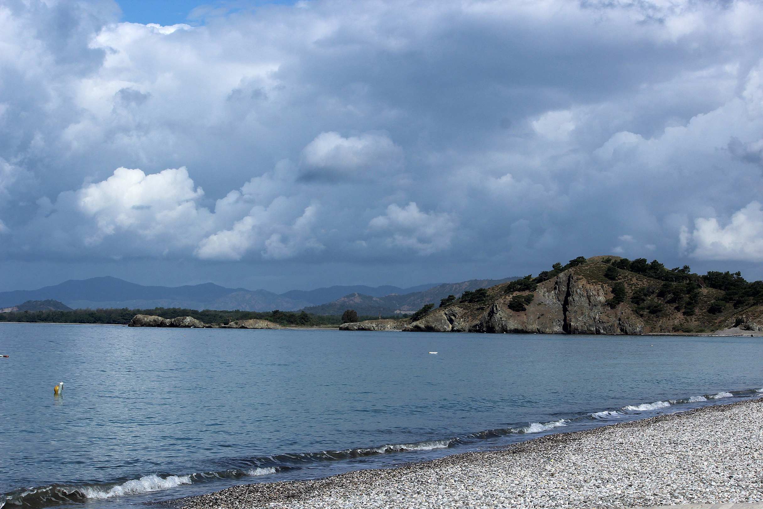 Berg rechts am Strand vom Hotel