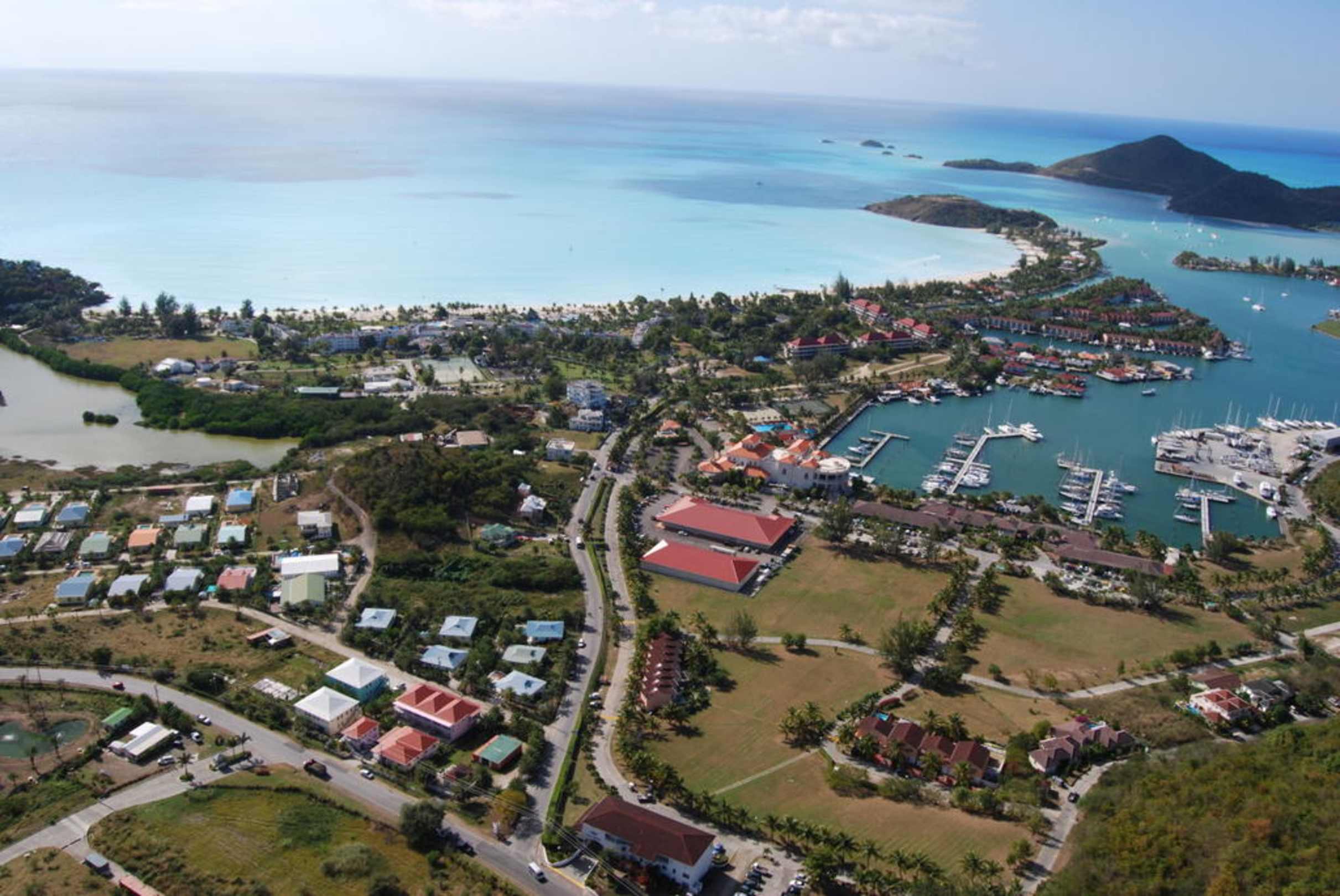 Hier ist Jolly Beach und der Jolly Harbour zu sehen