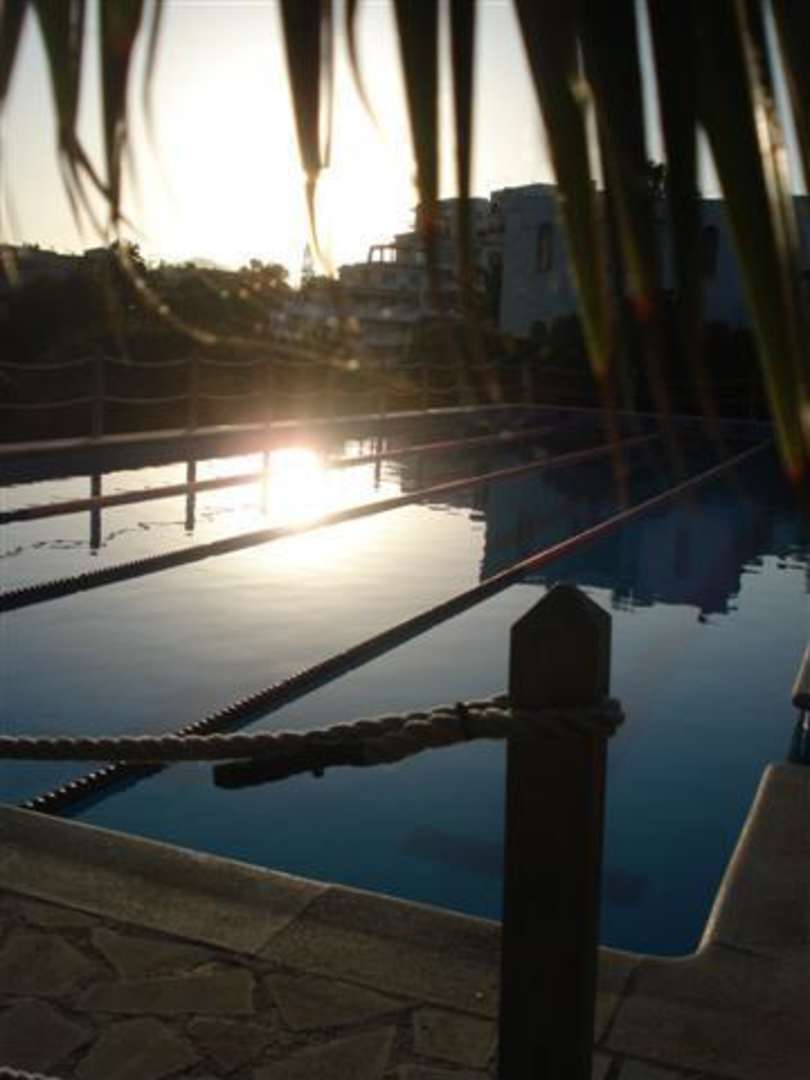 Großer Pool beim Sonnenuntergang