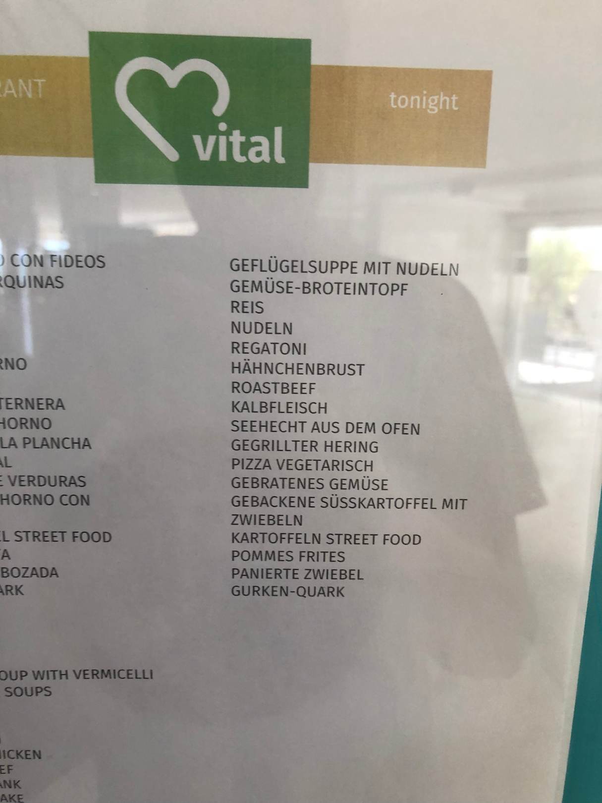 Speisekarte für Abendessen