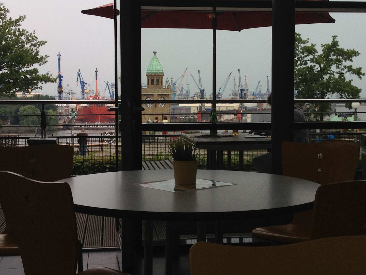 Essensraum mit Hafenausblick