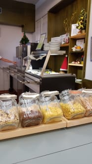 Das sind die Müslisorten wird immer mehr drauf gefüllt also auch nichts Besonderes 365 Tage im Jahr den gleichen Kram rechts daneben stehen die Glasschalen wo am ersten Tag zwei Ameisen herum liefen aber es war nur am ersten Tag