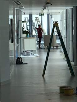 Zugang zur Lounge, in der Suite-Gäste eigentlich alternativ hätten frühstücken können