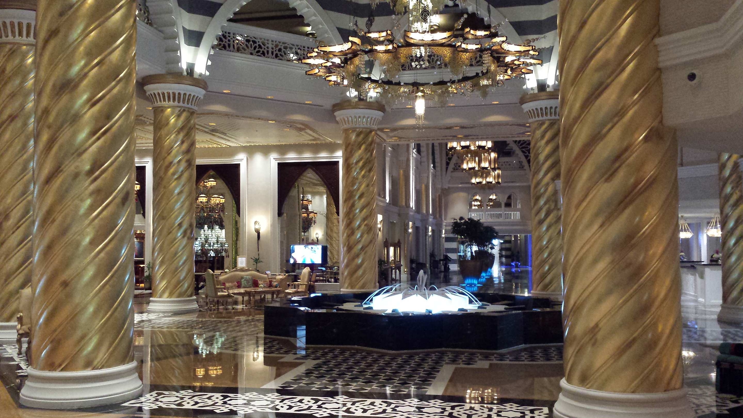 Die Lobby im Eingangsbereich mit dem Springbrunnen und Rezeption