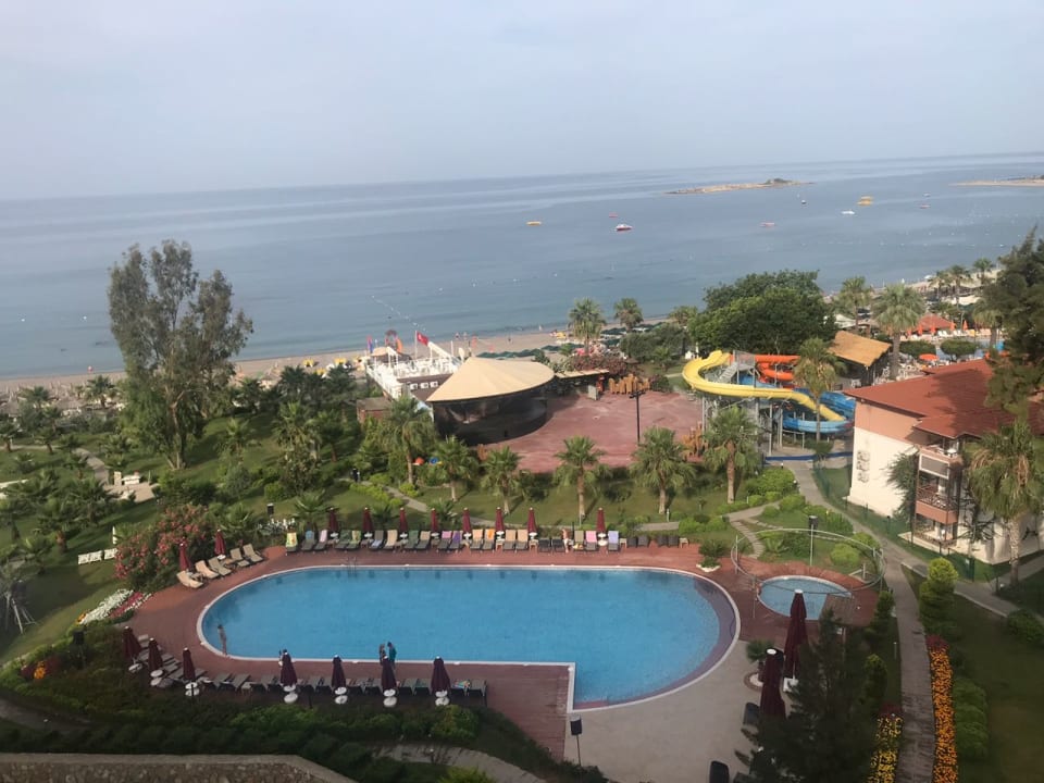 Das Meer vom Balkon aus gesehen mit Teilen der Anlage