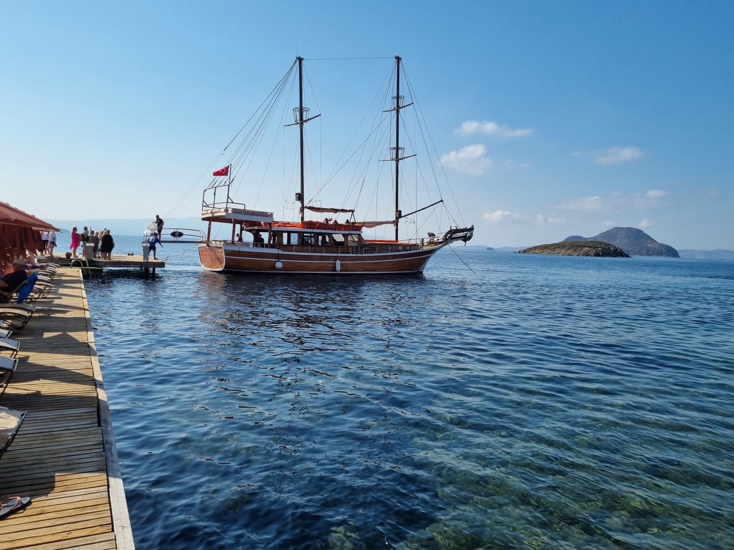 Das Schiff für verschiedene Rundfahrten legt am Steg an