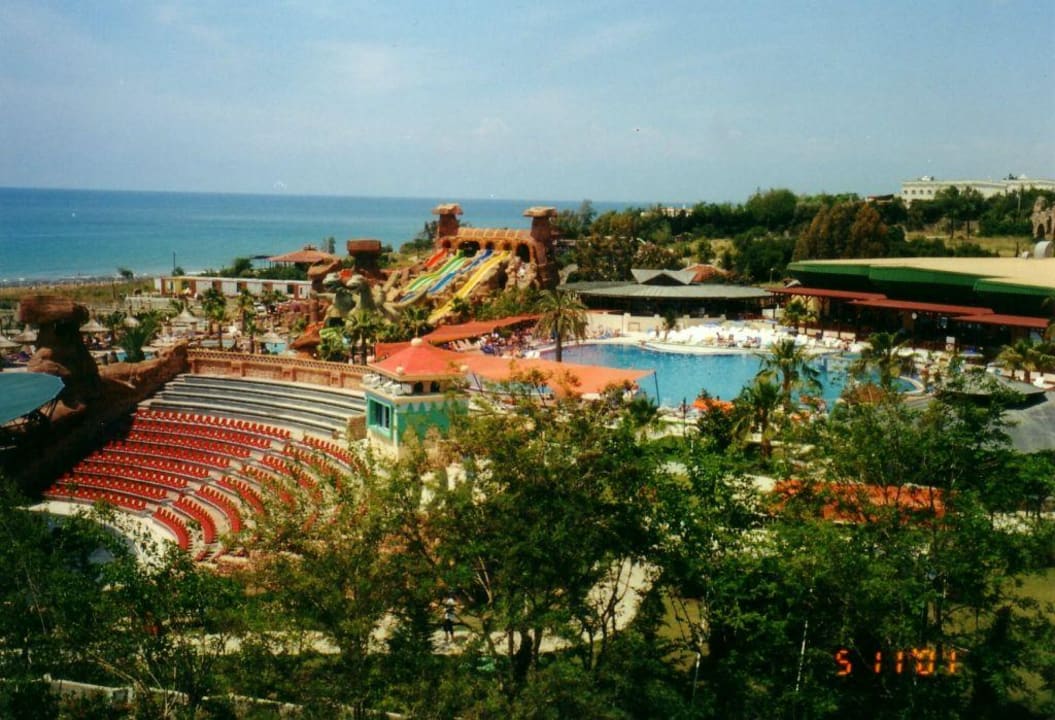 Blick auf den Aquapark des Hotel mit Amphiteheater. Dort werden die Abendshows abgehalten.