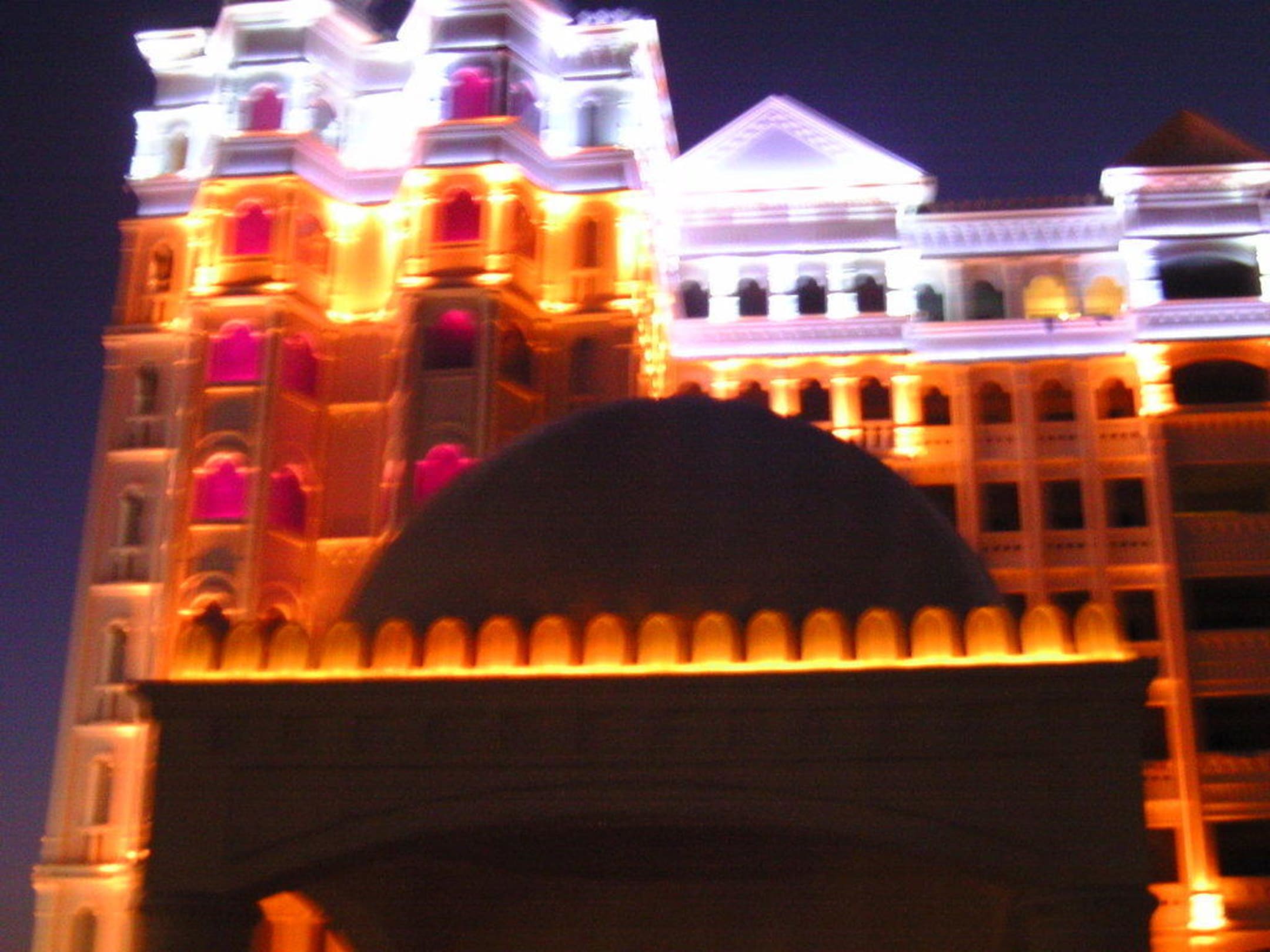 Wunderschöne Beleuchtung des Hotels am Abend und Nachts