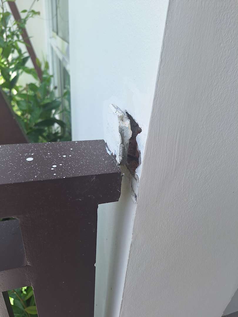 Ausgebrochenes Geländer auf der Terrasse
