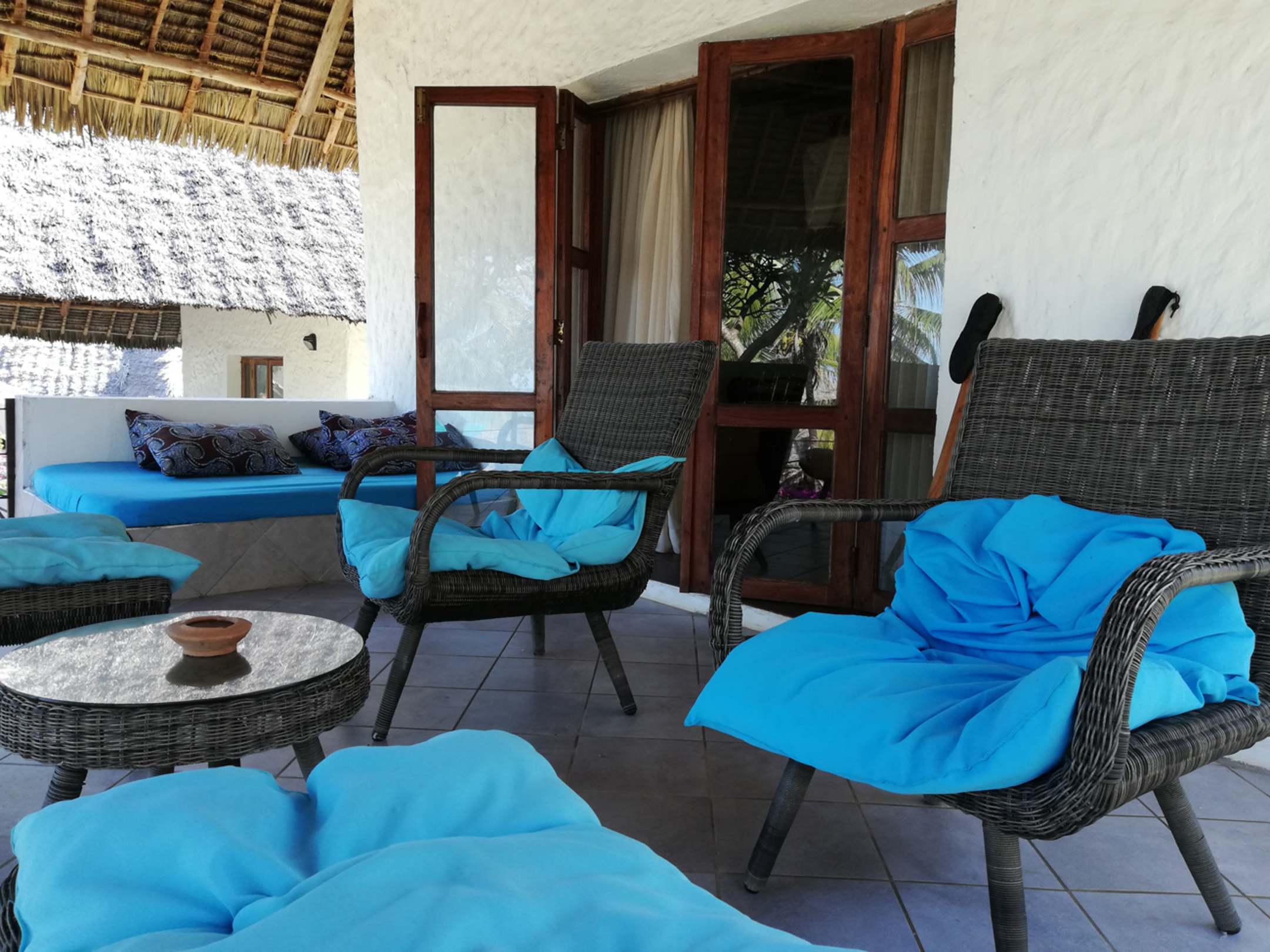 Schön bequem auf unserer Terrasse.