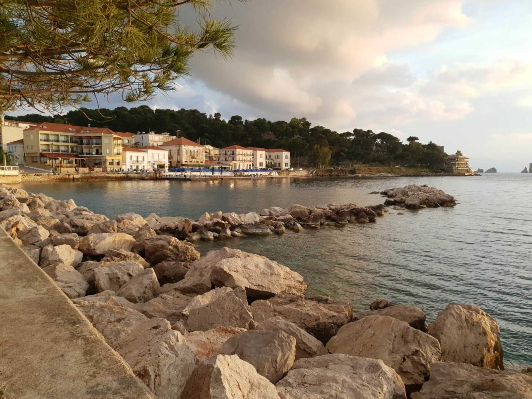 Hotel (ganz rechts) von Pylos aus gesehen