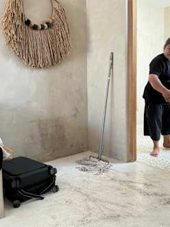 Reinigung mit Mop aus den 80er Jahren. Hier wird der Schmutz verteilt und nicht aufgenommen.