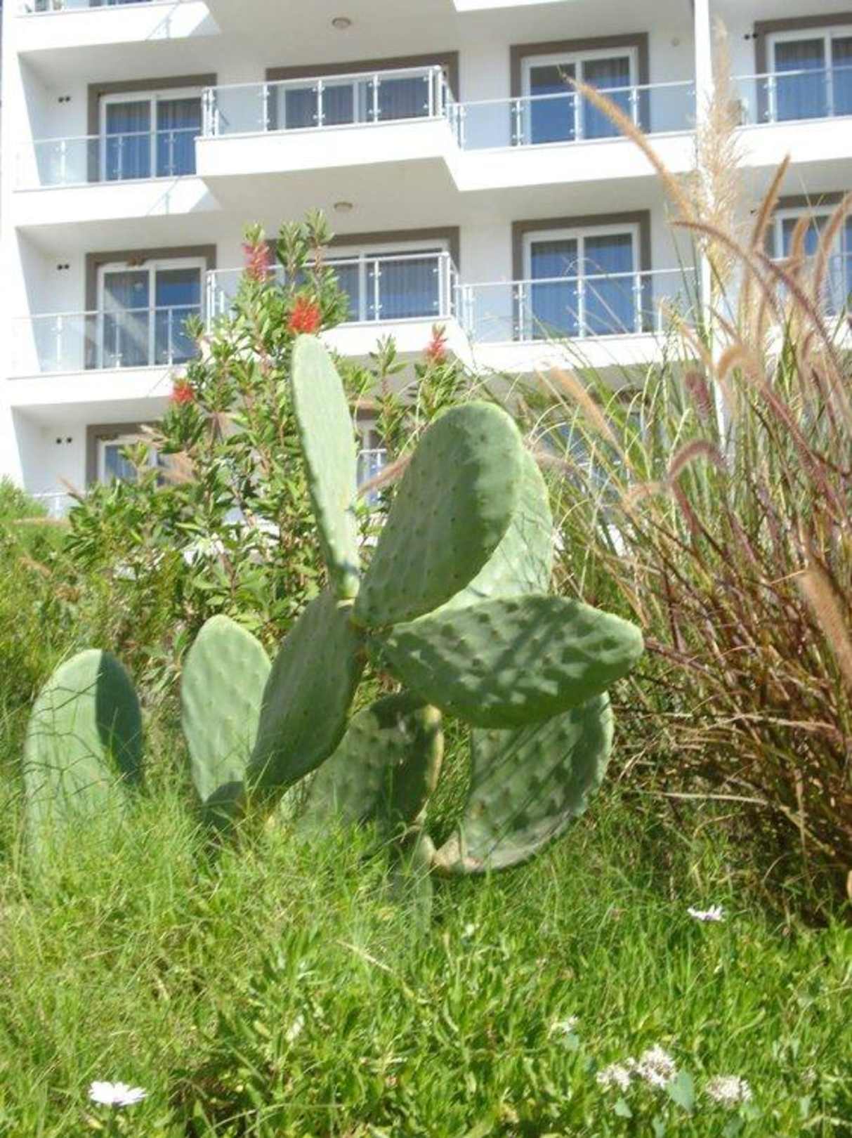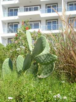 Kakteenkleiner Hügel mit Kakteen, Blumen, Sträucher u.ä.