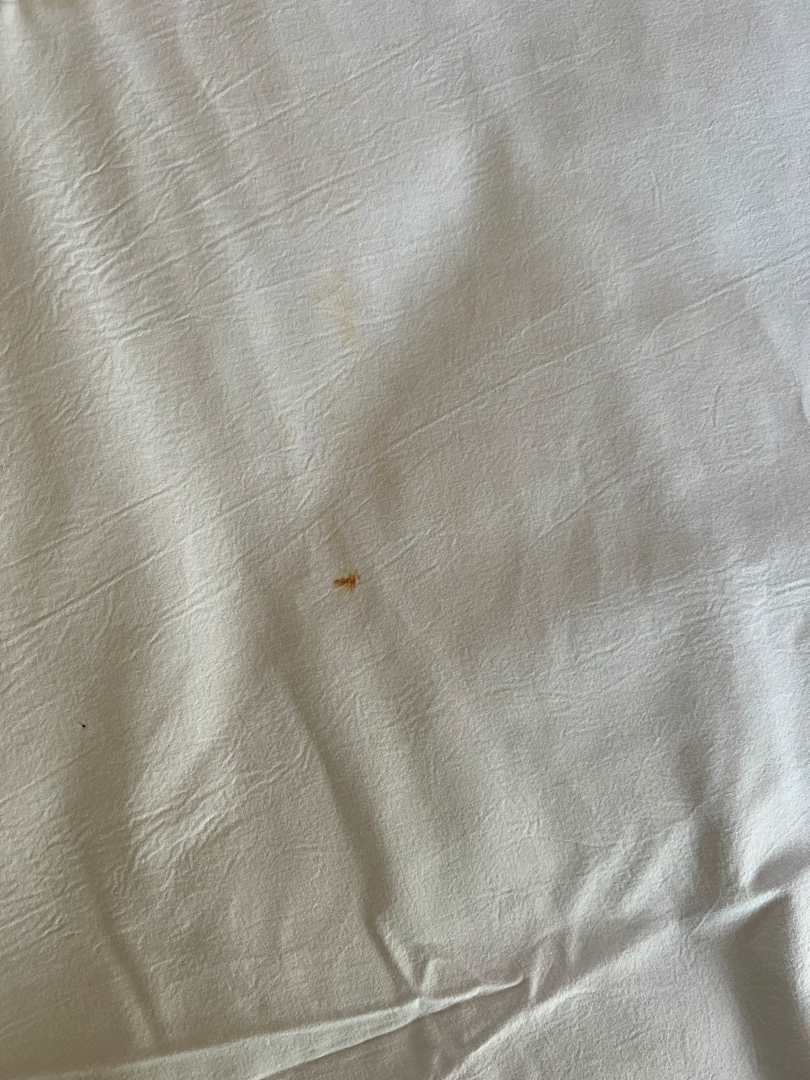 ZimmerEin Blutfleck auf dem Bettlaken direkt unter dem Kopfkissen