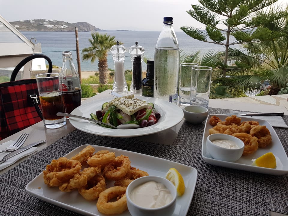 Fried Calamari mit einer sehr leckeren Knoblauchcocktailsauce - Greek Salat