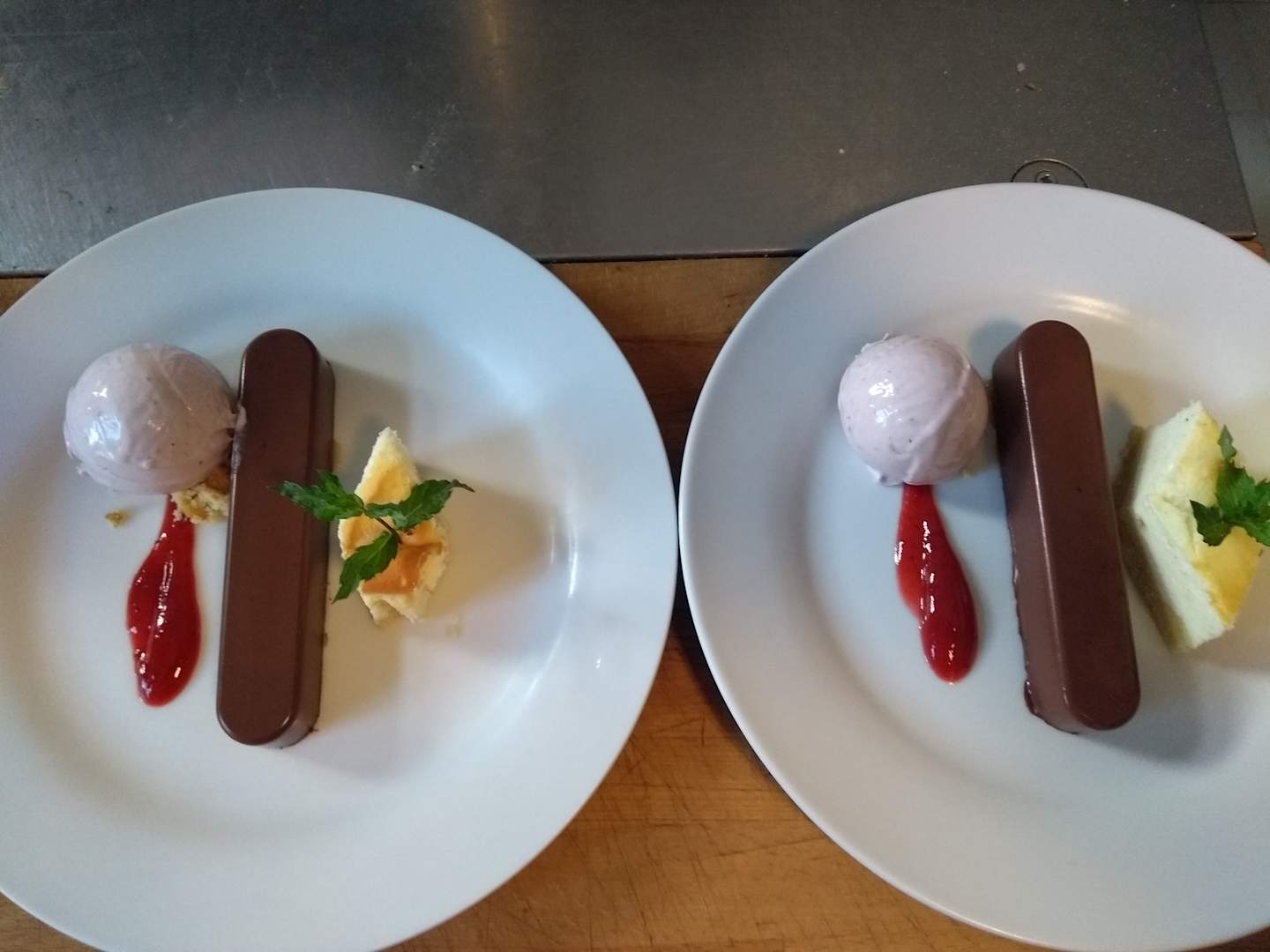 Als Dessert. Schokolade, Himbeereis und Quark