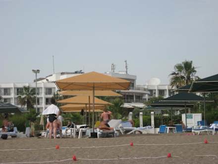 Strand mit Blick auf das Hotel