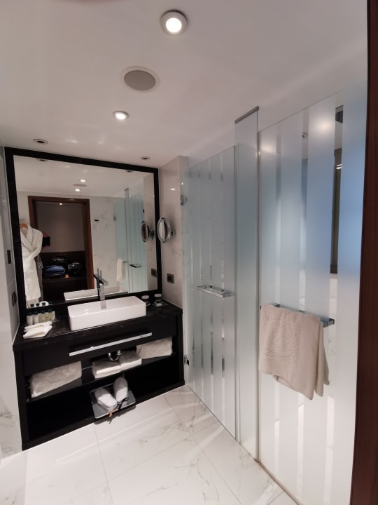 Extra Badewanne war noch auf der linken Seite vorhanden. Hinter den Glastüren, WC und Dusche.