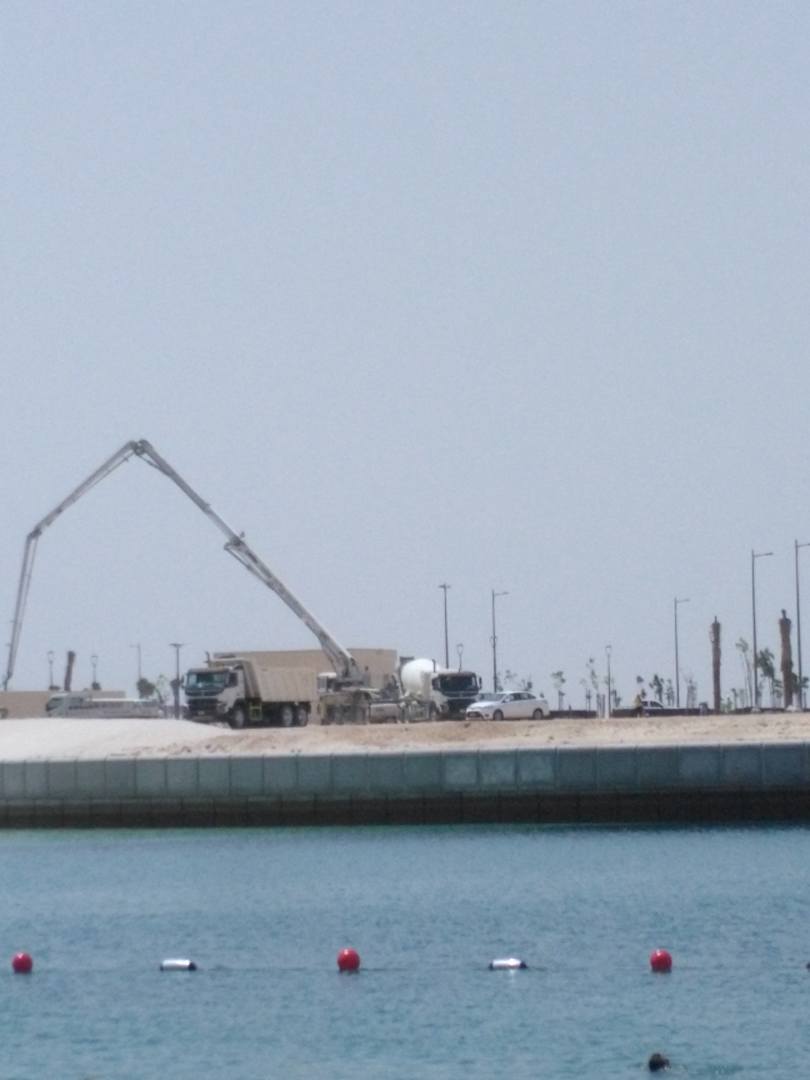Tägliche Bauarbeiten gegenüber auf Coconut Island.