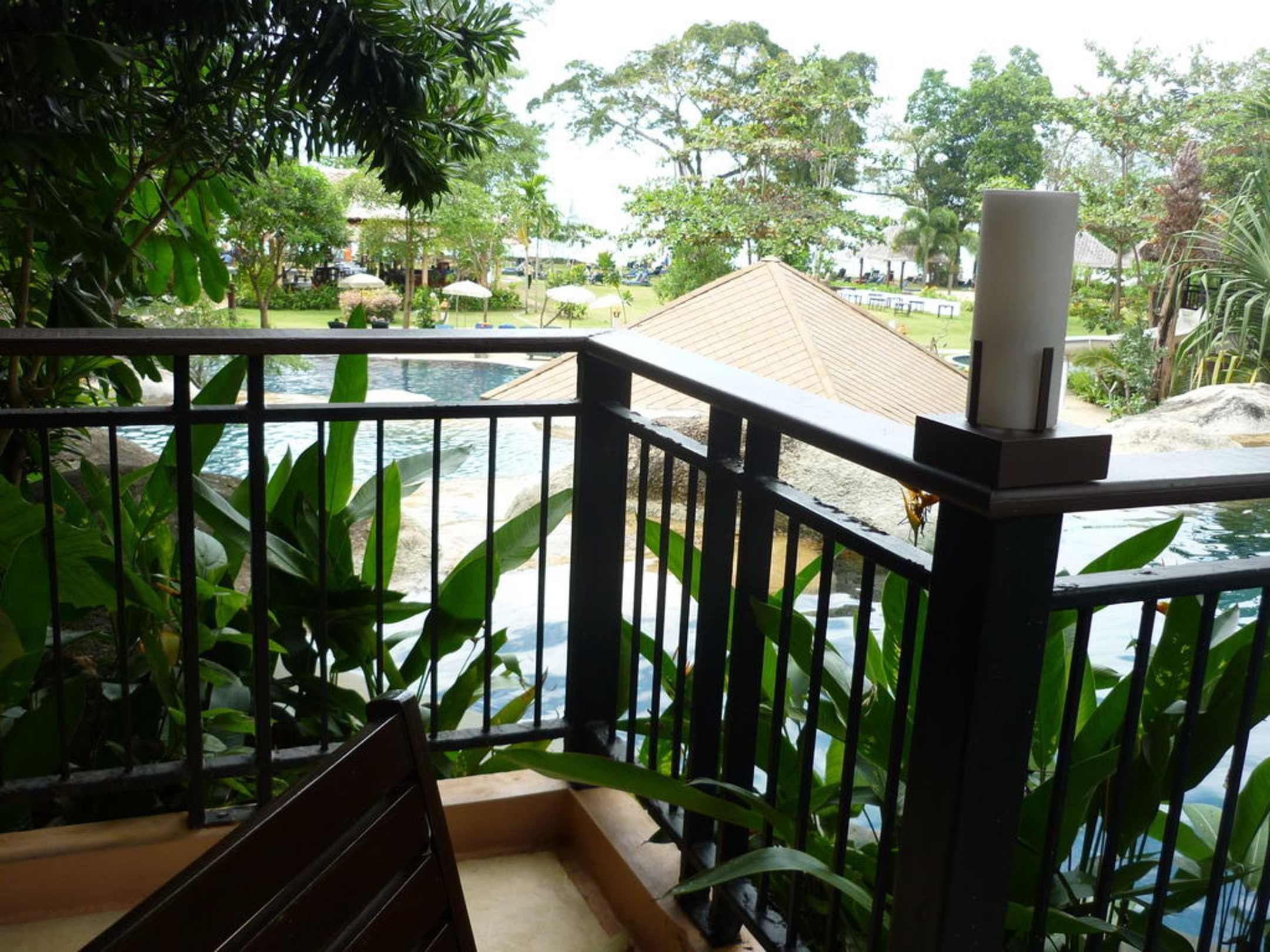 Blick vom Balkon Richtung Gartenanlage und Meer