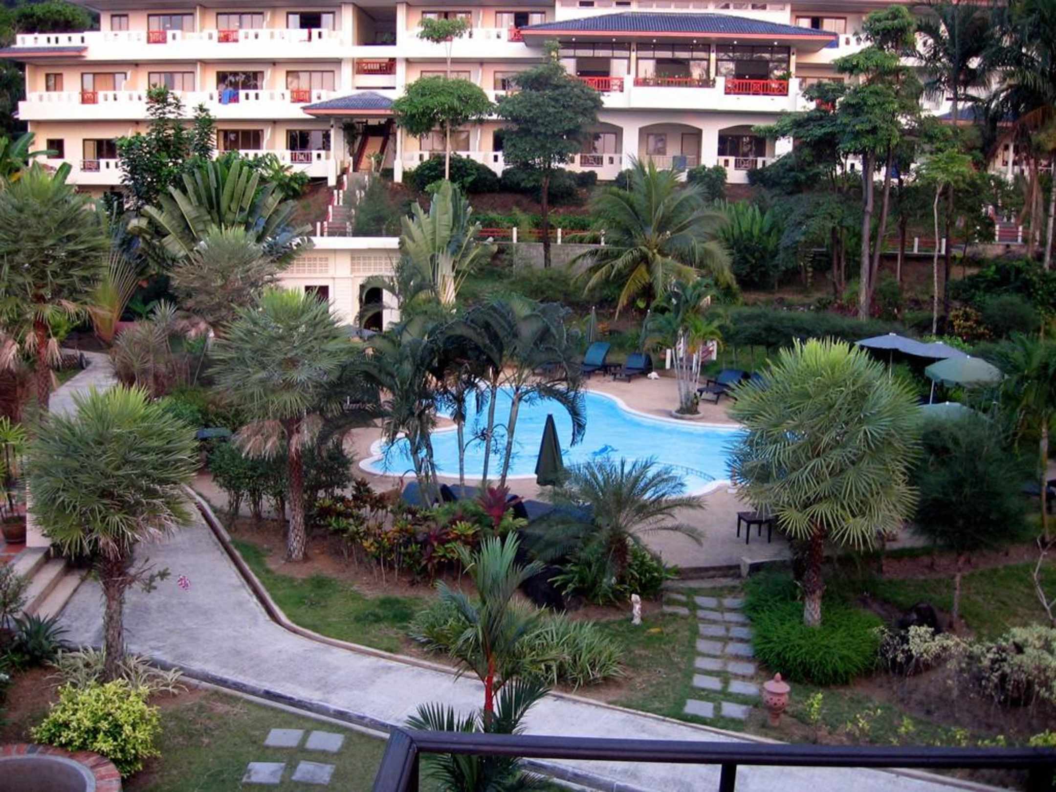 Blick auf den Pool und das Hauptgebäude