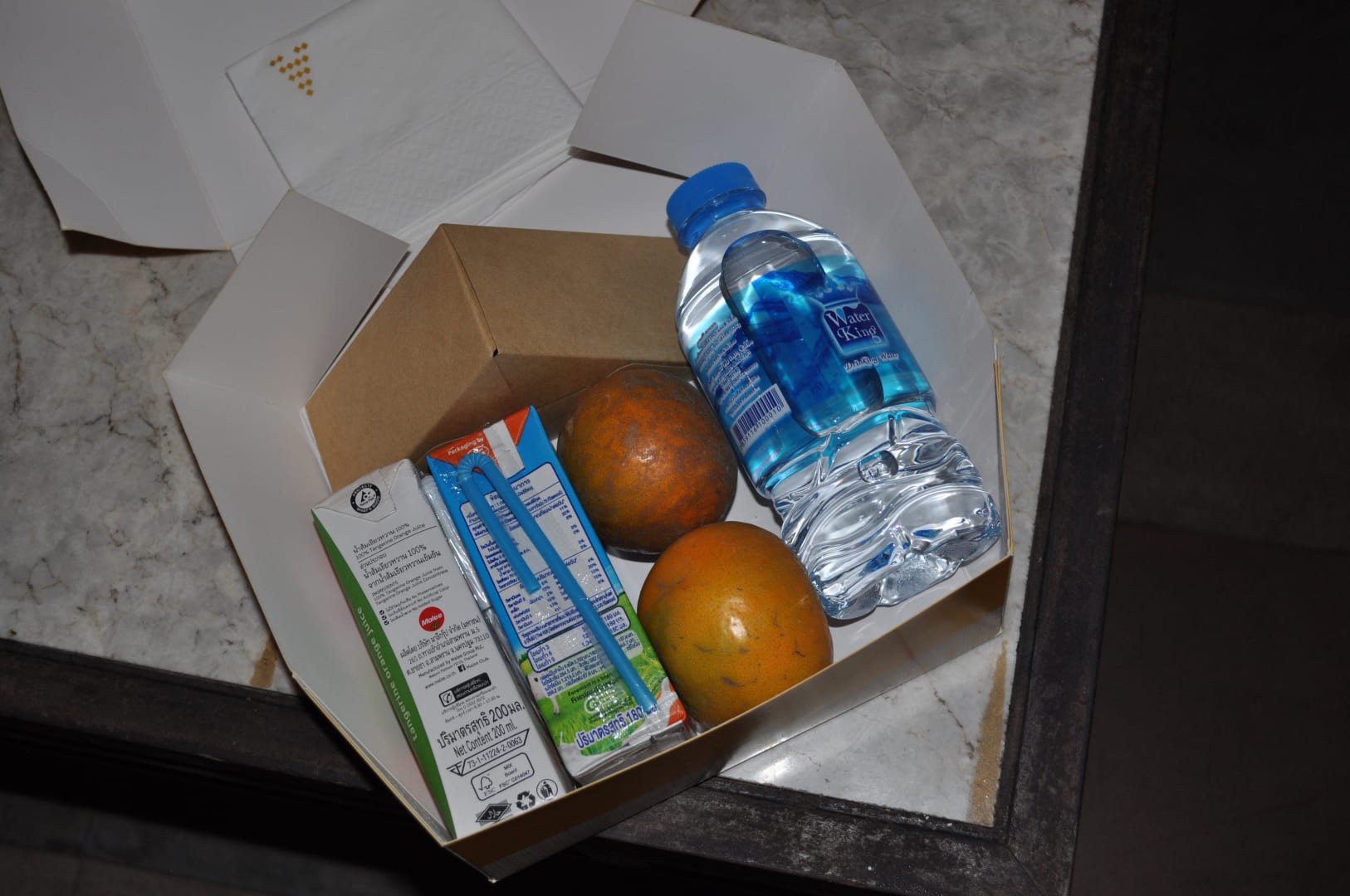 Lunchbox: 1 Pkg Saft, 1 Pkg Milch, Wasser und halbes Sandwich