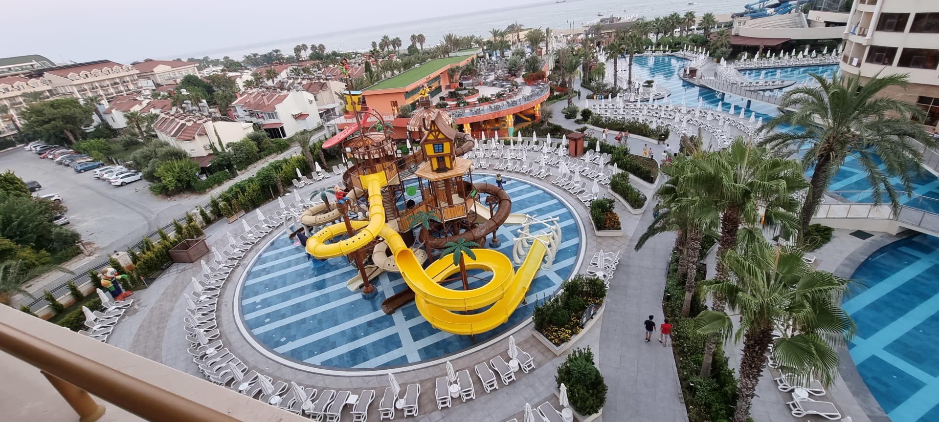 Ausblick auf Kinderparadies, Pool, Infinitypool & Patisserie (oben links)
