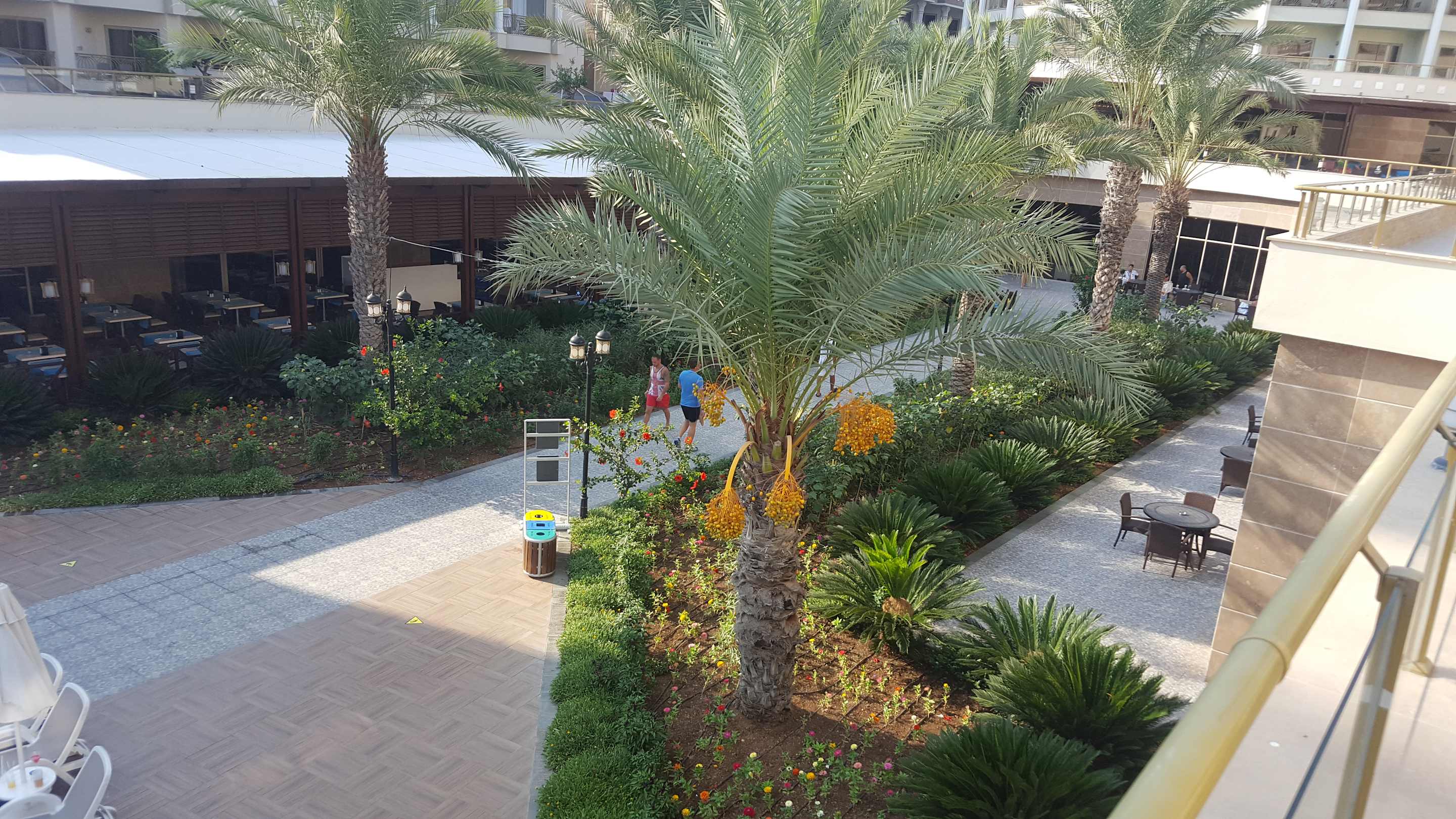 AusblickAußen absicht von der Terasse wo man seine Mahlzeiten zu sich nehmen kann