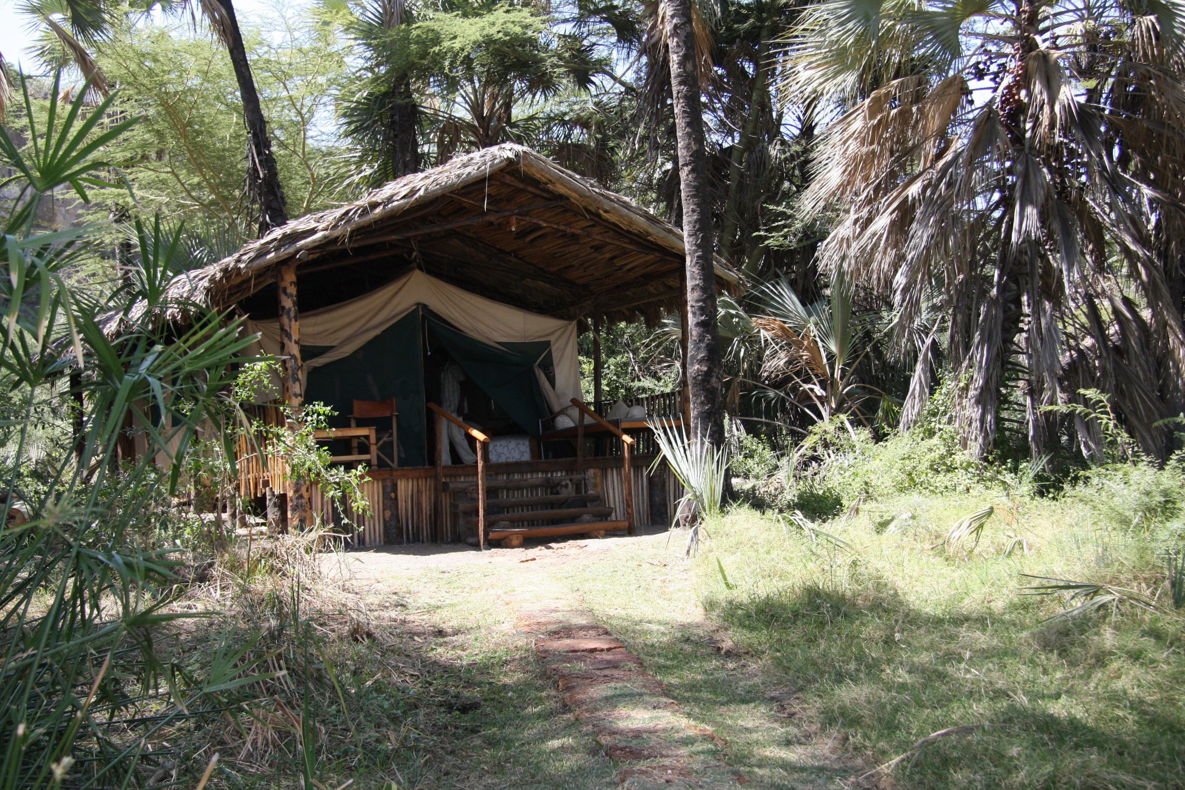 Schöne Zelte unter Palmen Kisima Ngeda Tented Camp