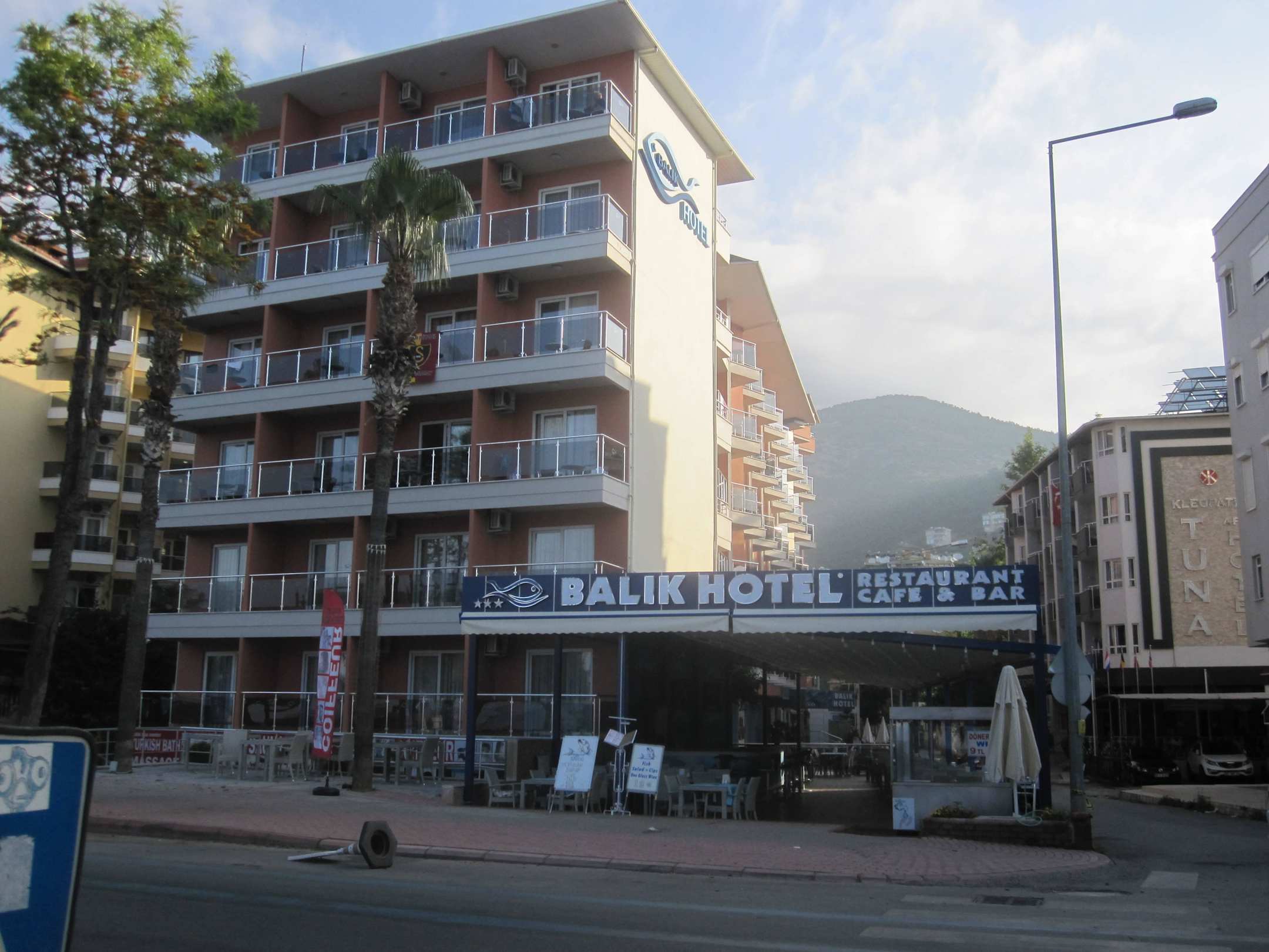 Voorkant van het hotel.