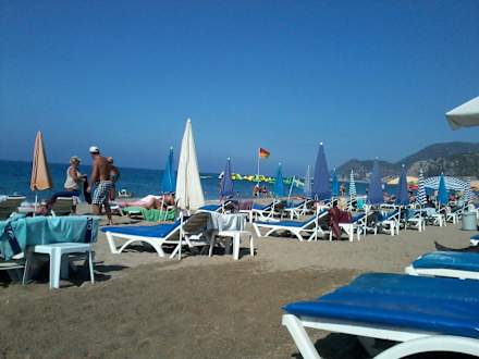 Gepflegter überwachter Strand, saubere Liegen