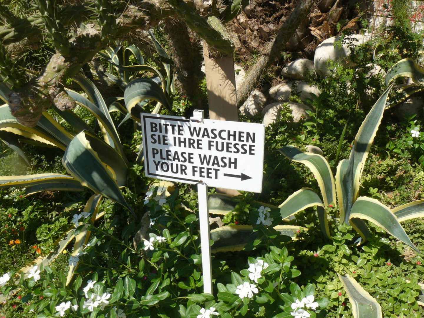 Tabliczka przed wejściem do hoteluPrzed wejściem do hotelu, wracając z plązy należy przepłukać stopki.