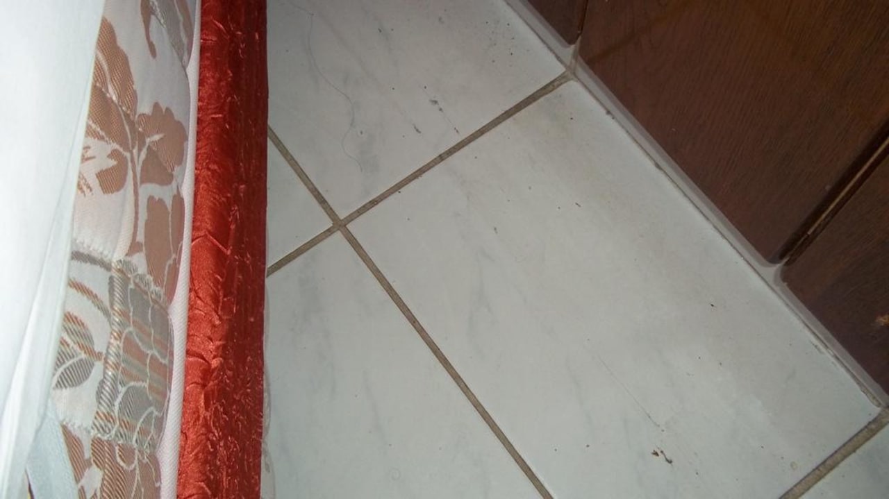 verschmierter dreck.der muß aber schon lange da sein.der haftet schon an den fliesenfest.