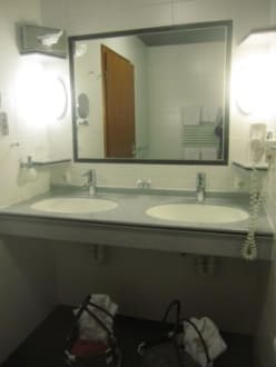 Waschtisch mit Kosmetikspiegel, Ablagen und Fön
