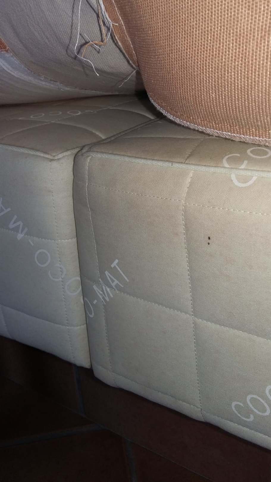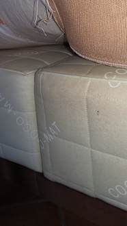 Bett schmutzig mit Flecken und sehr unsauber.