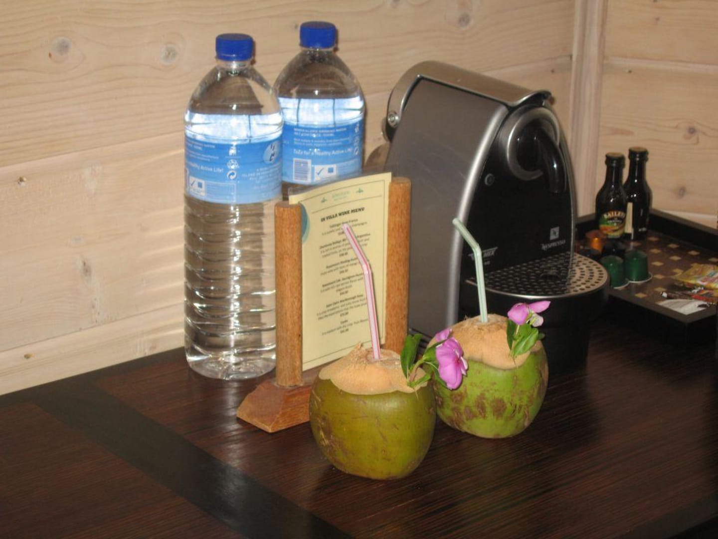 Eine Espressomaschine + Wasser am Zimmer + Begrüßungskokosnuss