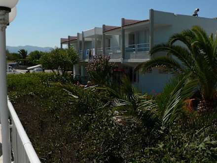 Hotel Kouros Bay - SüdseiteDie südseitig gelegene Hotelfront. Die Balkone dieser Zimmer schauen auf den Pool und das Restaurant.