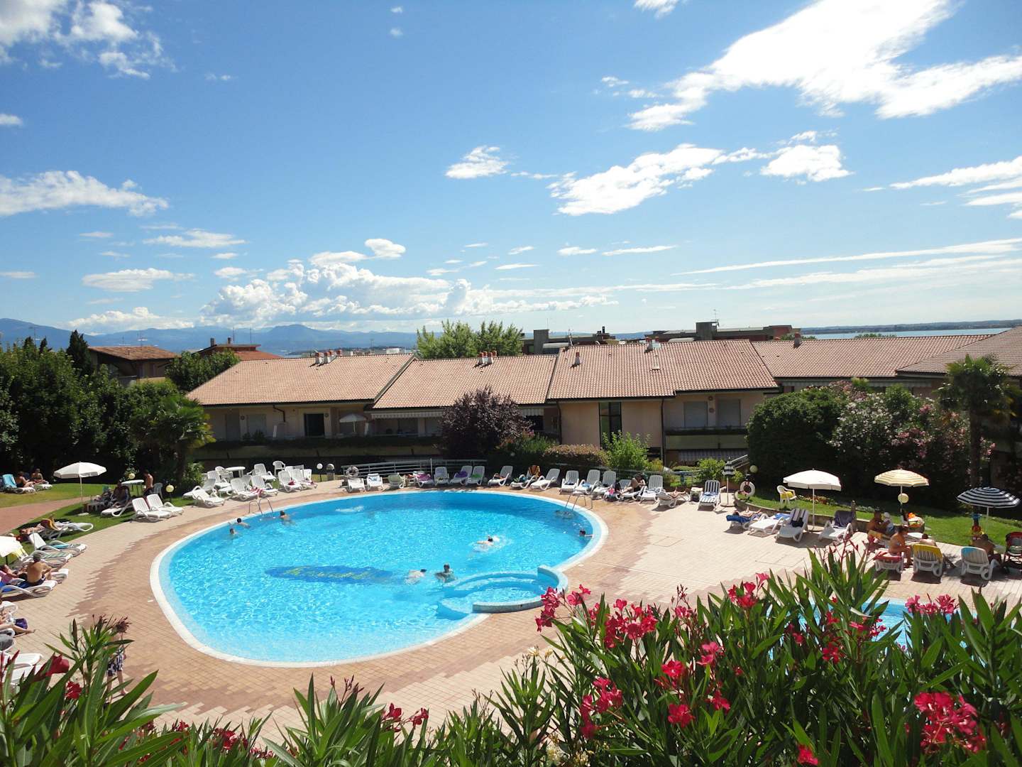 Blick von der Terrasse auf den Pool