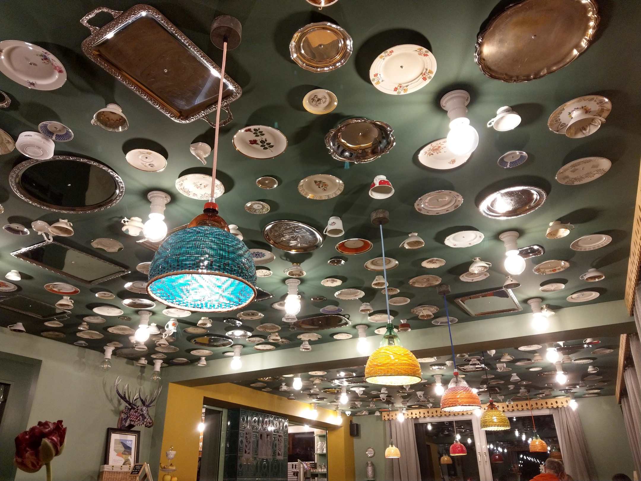 Das Hotel hat nicht mehr alle Tassen im Schrank: diese hängen an der Decke ;-)