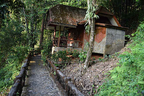 Befestigte und beleuchtete Wege führen zu den Bungalows am Hang